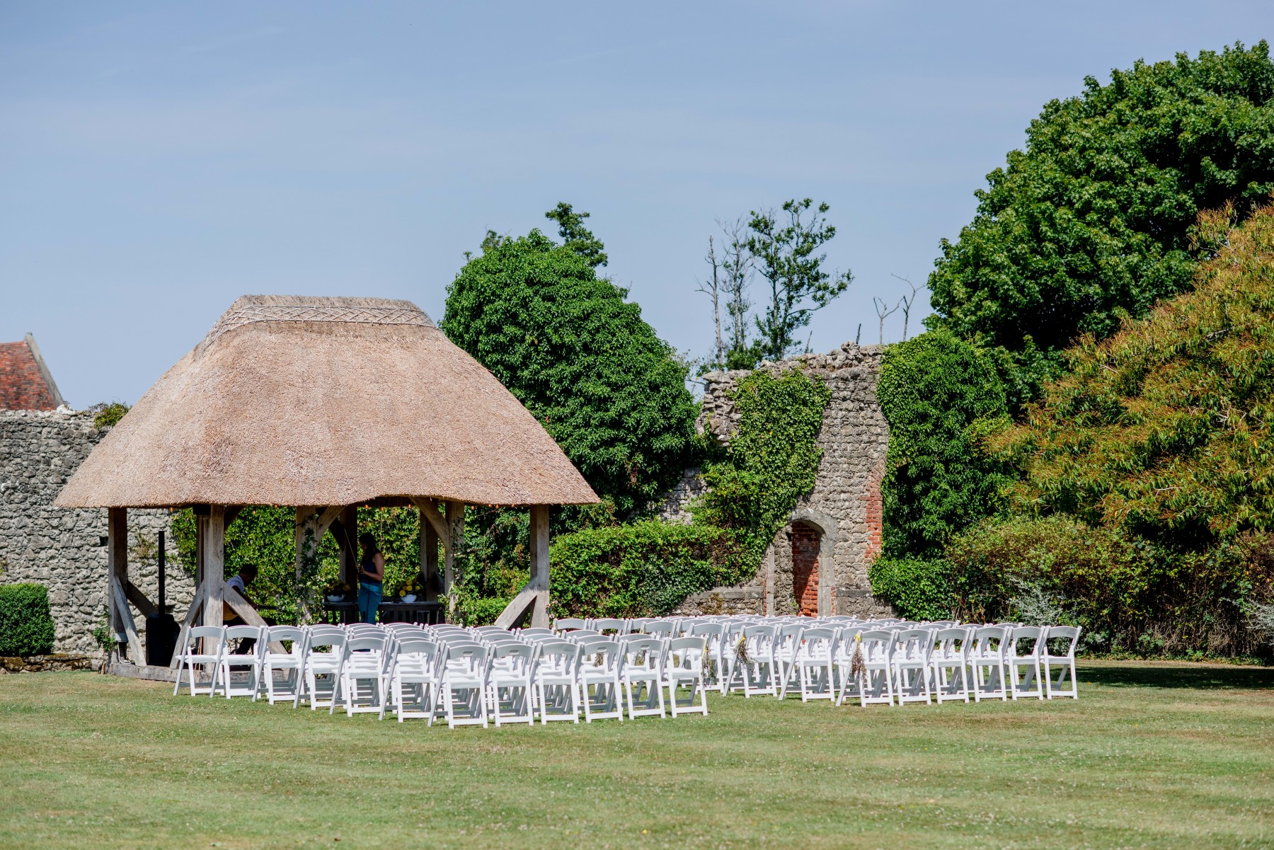 After the ceremony, toast your nuptials in the private bar before feasting on an unforgettable wedding breakfast in the marquee, with its views of the castle ruins and manor house.