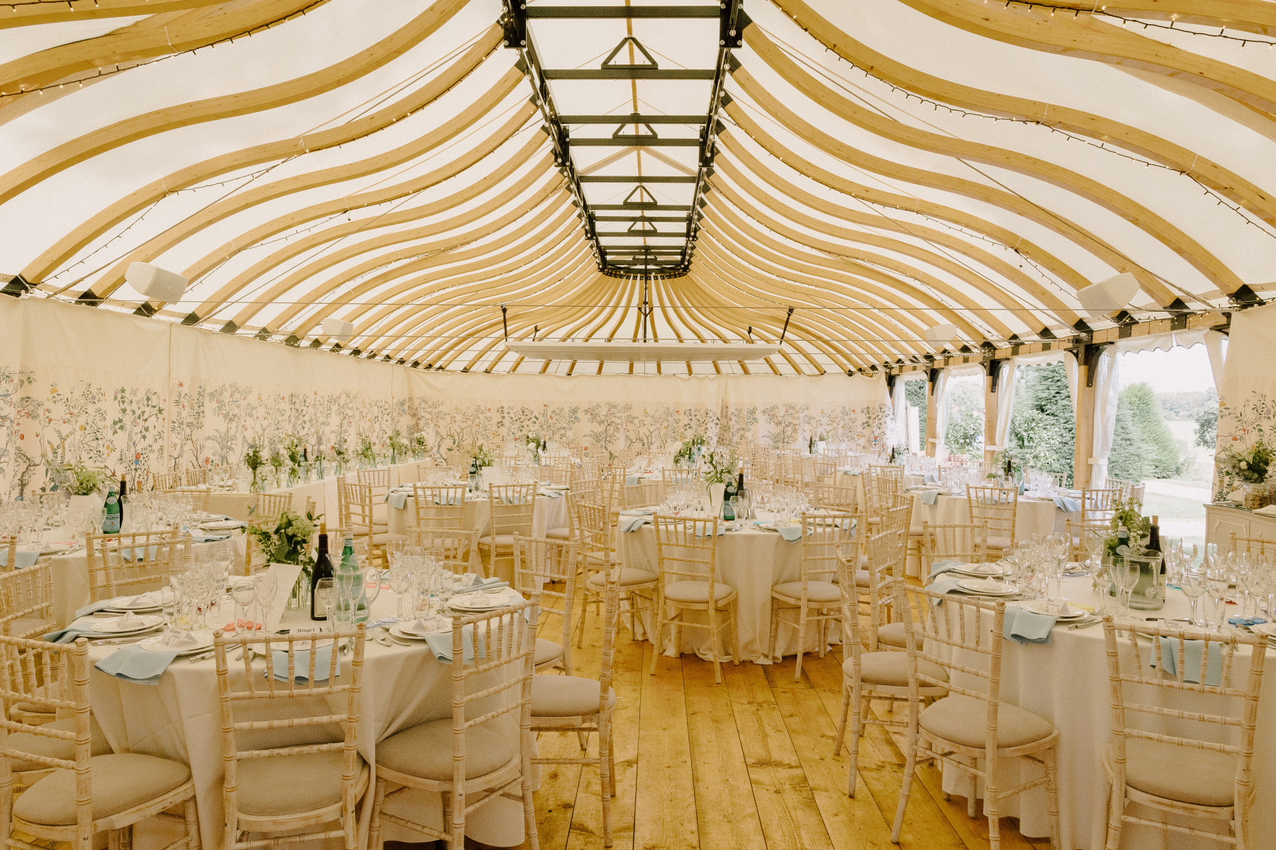 The luxury timber-framed, Italian inspired Orangery Marquee, custom made by Bohemia Canvas provides the ultimate space to host your wedding breakfast followed by an evening on the dance floor.